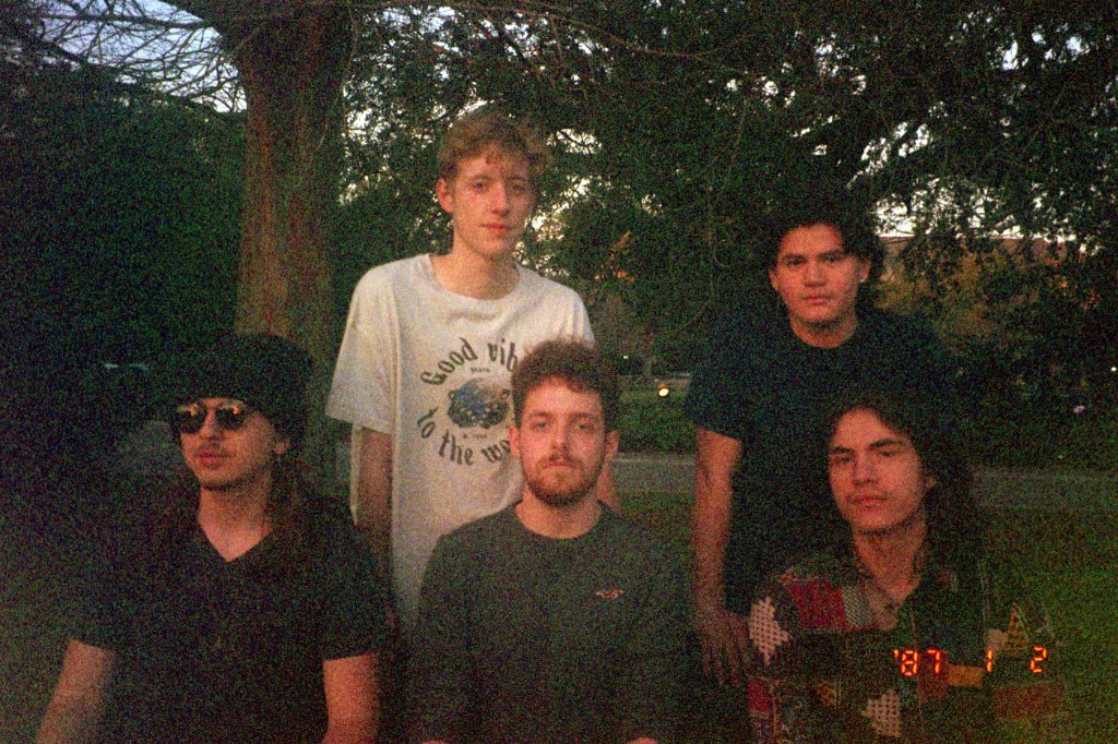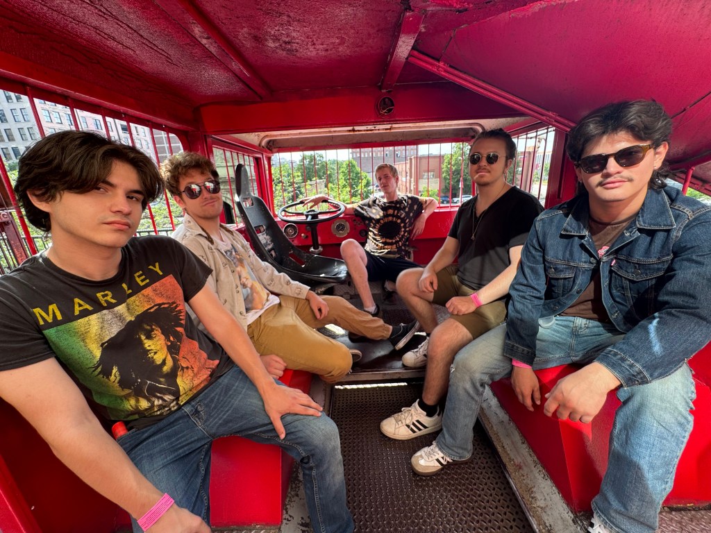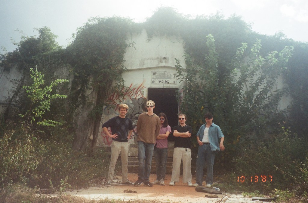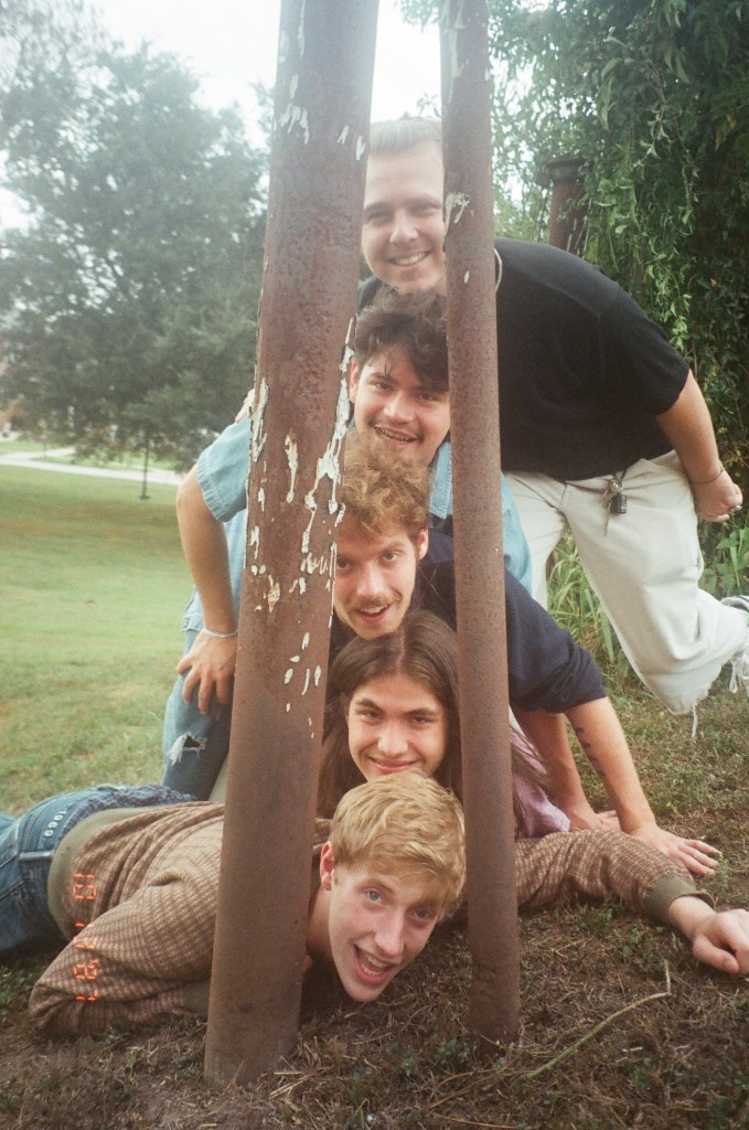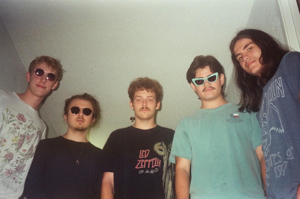 At the start of 2022, Victor Perez moved back to Puerto Rico and the band had to source a session player, Aidan Dokland, to temporarily fill in on bass. After the group had been rehearsing together for some time, they thought it necessary to add a fifth member to the bunch – Jack Owen, the so-called “secret weapon” of the band. To this day, Owen primarily functions as the tertiary (sometimes rhythm) guitar player who’s textural and psychedelic playing style elaborates upon and fills in the other player’s instrumentation with colorful and emotional layers that complete the musical picture of the group. With this five-piece lineup, the group performed at their first official concert as well as recorded their first single release “Arrival / Monster in Your Head”, released in January 2023, which has since garnered over 8,000 streams on Spotify and was described by OffBeat Magazine as “Psychedelic acid rock with Cake-esque talk-singing to aggressive punk shouting and speed without sacrificing the high-fidelity instrumentation much like British experimental rock band Black Midi.” When Aidan Dokland had to step away from the band shortly after their first official concert performance, the group was yet again temporarily left without a bass player, but this did not stop them from continuing to write and record new material. At the start of autumn 2022, Croft and Alvarez introduced Heil and Owen to Caleb Hedemark, the groups long-time running bass player and the final piece of the official lineup since his arrival. With Hedemark’s budding bass skills flourishing within the band, the dust surrounding the group finally began to settle.